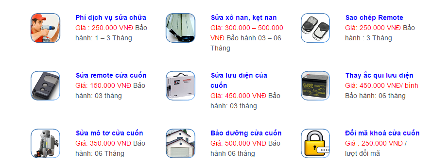 BẢNG GIÁ DỊCH VỤ SỬA CHỮA CỬA CUỐN 2025